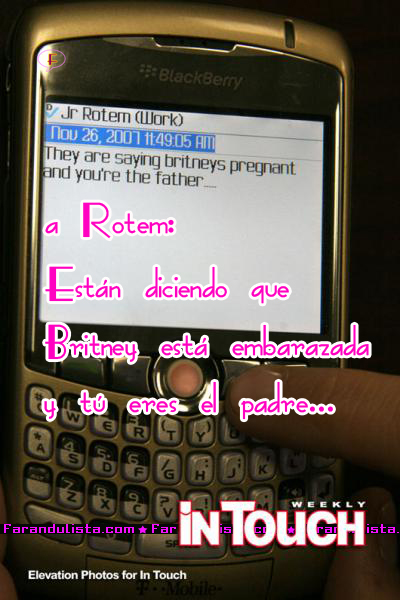 La revista In Touch Weekly continúa insistiendo que su historia sobre el embarazo de Britney Spears es cierta. Luego de que Usmagazine.com desmintiera la "primicia" de que Britney Spears estaba embarazada de su tercer hijo, In Touch ha publicado las pruebas, fotos de los mensajes de J.R Rotem, el ex de Britney, confirmando su embarazo. Oh, Por favor! Esto bastante sospechoso. Veremos en qué termina esta guerra de tabloides, solo el tiempo dirá si Brit Brit en realidad tendrá un tercer hijo dentro de menos de 9 meses. In Touch magazine insists that the "Britney Spears is pregnant story" is true and It has proof. J.R Rotem did indeed confirm in these text messages that Britney is pregnant and that he is the father. OMG! I can't believe it! Well, only time will tell the true.