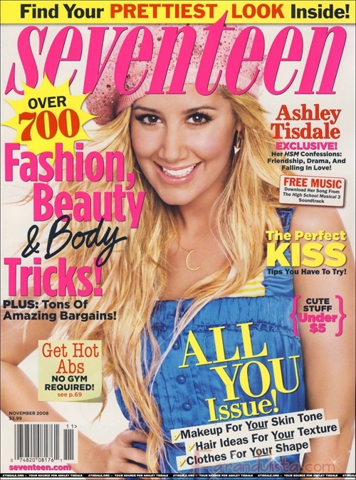 Ashley Tisdale sonríe para la portada de Seventee, Nov 2008