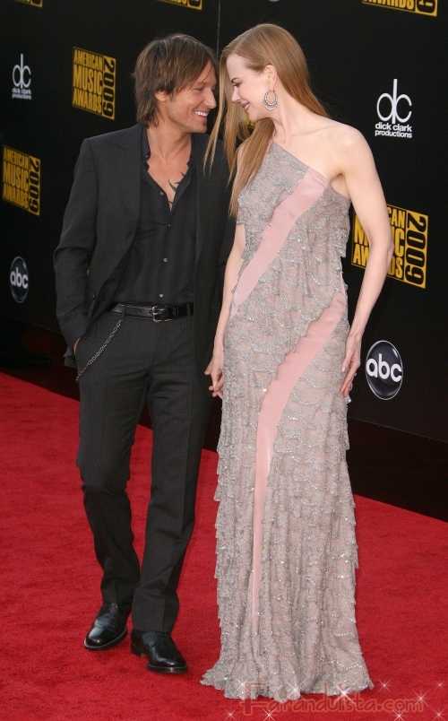 Nicole Kidman asistió a los American Music Awards 2009 y lució muy elegante mientras caminaba y posaba en la alfombra roja junto a su esposo Keith Urban. Kidman llevó un vestido gris y rosa de Balenciaga y se unió a Kate Hudson para anunciar la presentación de Black Eyed Peas. Keith Urban se llevó el premio como Artista Favorito en la Categoría de Música Country. Nicole lucía hermosa, aunque no estoy muy segura de si me agrada totalmente ese vestido.