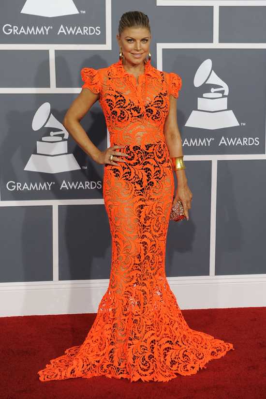 AP Photo/Chris PizzelloCelebs en la Red Carpet de los Grammys: Taylor Swift llevó este vestido de sirena color nude de Zuhair Murad y accesorios de Neil Lane. Snooki fue vestida con este espantoso mini vestido negro y blanco (eewww… Fashion Police!!!), Kelly Osbourne se presentó con este vestido dorado de un solo hombro de Tony Ward, zapatos de Giuseppe Zanotti y accesorios de Pomellato. Kate Beckinsale con este vestido (de su hija?) por Zuhair Murad. Stacy Fergie Fergunson llevó este espantoso traje naranja de Jean Paul Gaultier y accesorios de Neil Lane (Lingerie de la abuela). Rihanna fue vestida de Giorgio Armani con accesorios de Neil Lane (looking good!). Carrie Underwood un vestido de Gomez-Gracia y bolso Swarovski (fug). Katy Perry con un Elie Saab y joyeria de Norman Silverman (dicen que vale $2 millones de doleratos… pulease, ni se notan!). Nicki Minaj fue vestida de monja satánica? toda de rojo. Adele fue con un Giorgio Armani negro y accesorios de Harry Winston (Gorgeous!!).