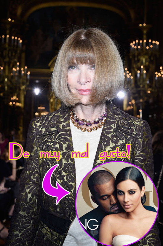 Bahaha! La Editora en Jefe de Vogue, Anna Wintour ha insinuado que poner a Kim Kardashian y a Kanye West en la portada de Vogue no fue de muy buen gusto. They are not deeply tasteful… at all!! Dias después que Kim K mostrara su popo maker super photoshopeado en Paper magazine, Anna Wintour en una conversación en el Metropolitan Museum of Art este lunes, sugirió que la parejita no es precisamente de buen gusto.