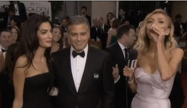 Ah y la patética de Giuliana Rancic le pidió a los Clooney en la red carpet de los Golden Globes que tomaran un shot de tequila Casamigos… yeap ahí en vivo. Ha! Obviamente ellos se negaron… George lo hizo muy educadamente. Well, Giuliana FAIL! Pero entonces Giuliana se tomó el shot de tequila diciendo que era muy suave… y la cara de los Clooney era … omg lol! Amal se veía incómoda y quería irse… y George. Come on! Rancic le pidió que tomaran en TV? Amal es una abogada reconocida, y Geoge tiene un reputación… Bahahaha, que creía la Rancic? Que iban a hacer el ridículo en tv junto a ella? Era un "trágame tierra" … Giuliana debería comer, no beber. Trashy!