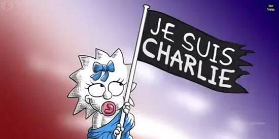 Los Simpson rindieron tributo a la revista francesa Charlie Hebdo en su episodio del domingo (11/01). Al final se puede ver a Maggie con una bandera que dice ‘Je suis Charlie’… en apoyo a la revista satírica francesa que fue víctima de un ataque terrorista a comienzos de la semana, donde murieron 10 personas de su equipo.
