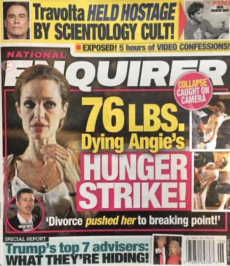 El titular dentro de la revista, es tan dramático como la portada, y dice: "Impactante Huelga de hambre. El horror con Tubo de alimentación para Ange! Además se afirma que la "demente ganadora del Oscar bajó a los 34 kilos y está bailando con la muerte!"