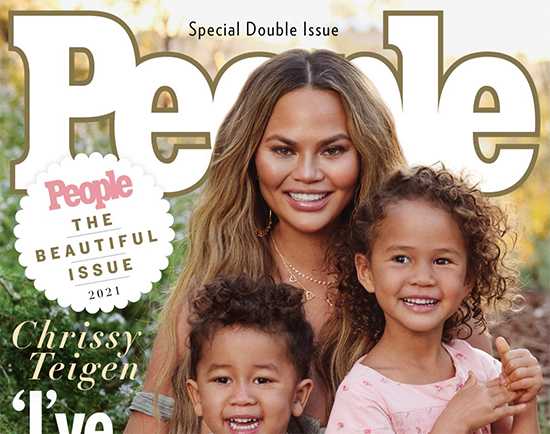 Chrissy Teigen la Mujer Más Hermosa 2021 People. La modelo y autora de libros de cocina posó para la portada People en su edición de Los Más Hermosos, junto a sus dos hijos Luna y Miles.