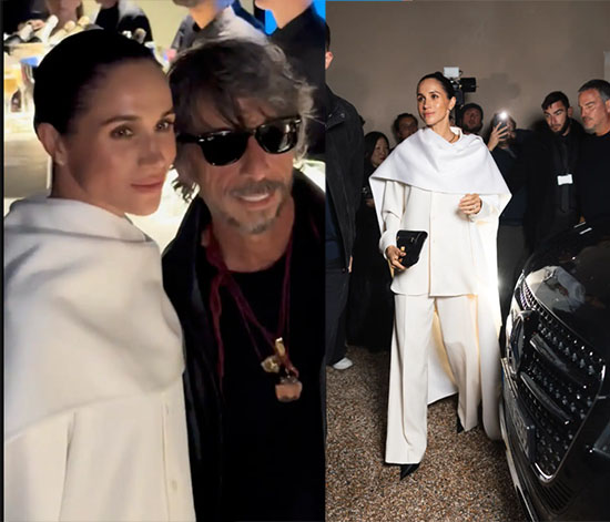 • Meghan Markle se apareció en el Paris Fashion Week y el diseñador de Balenciaga dijo que ella misma se invitó. LOL! Vieron el traje que llevó? Parecía disfrazada, se había forrado en papel blanco absorbente. Por cierto, que hipocresía la de la Duquesa y todo Hollywood en general, apoyando esa marca que hizo esa asquerosa campaña usando niños. Indignación selectiva. – Pagesix