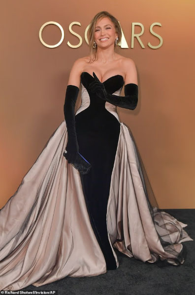 Jennifer Lopez deslumbró a todos en los Governors Awards con un vestido de alta costura negro y marfil de Tamara Ralph de la colección Otoño/Invierno 2025, en la 16ª edición de lo premios celebrados en Los Ángeles, el domingo.