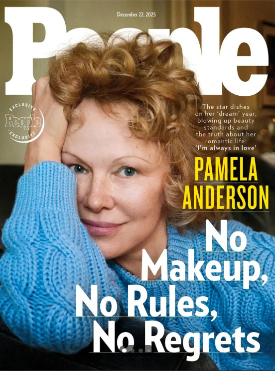 Pamela Anderson posó sin maquillaje para People en su edición de Diciembre 2025. Habló sobre su año soñado, derribar los estandares de belleza y reveló la verdad sobre su sonado romance con Liam Neeson – que como recordarán, fue tachado de FAKE!! Un truco publicitario para promocionar su película. No way!