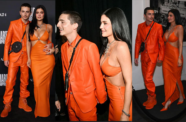 La parejita que no había terminado como dijeron las malas lenguas, llevó trajes combinados, luciendo lo que llamaron audaces y coordinados looks de Chrome Hearts anaranjados, y tratando de demostrar que su relación está mejor que nunca. El Timotí llevó carterita y todo, Kylie mostrando sus nuevos atributos.