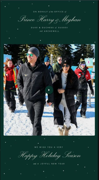 La duquesa de Sussex, de 44 años, compartió la imagen de ella y Harry con sus hijos junto con el mensaje: "¡Felices fiestas! De nuestra familia a la de ustedes." Dicen que esta es la foto más clara que han publicado con los principitos, Meghan siempre publica fotos pero nunca muestra las caritas.