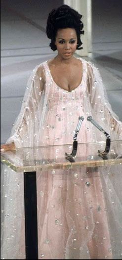 De acuerdo con los amantes de la moda el look de Ariana se inspiró en el icónico vestido que lució la actriz y cantante estadounidense Diahann Carroll en los Oscar de 1969.