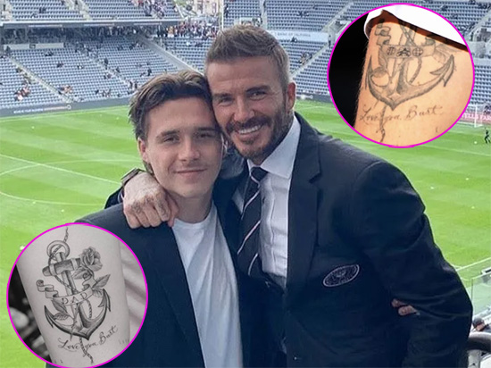 Resulta que vieron a Brooklyn y su esposa Nicola paseando en Los Ángeles y notaron que el chico modificó el tatuaje que tiene en el brazo en honor a su papá, Brooklyn ocultó la palabra ‘Dad’ de su tatuaje de ancla con tres formas, dos círculos y lo que parece ser una estrella en el medio. DRAMA!!! Esto luego que su papá David respondiera a lo que el casi chef dijo en las redes sobre la pelea con su familia y no querer reconciliarse con ellos.