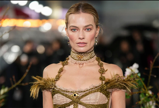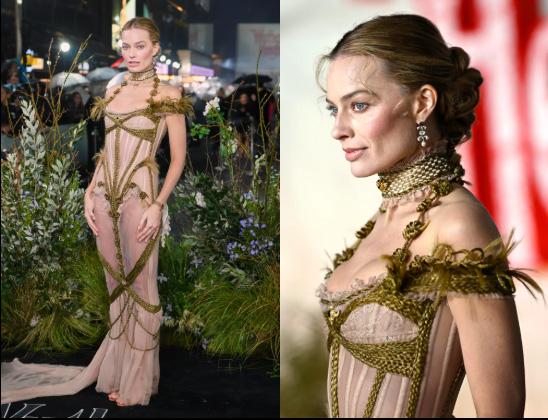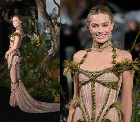 So, Margot Robbie usa la pulsera de luto de la autora de Cumbres Borrascosas para la premier en UK.