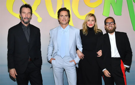 Keanu Reeves, Matt Bomer, Cameron Diaz y Jonah Hill posan juntos en el estreno mundial en Nueva York de su más reciente film #Outcome, en el Lincoln Square Theater.